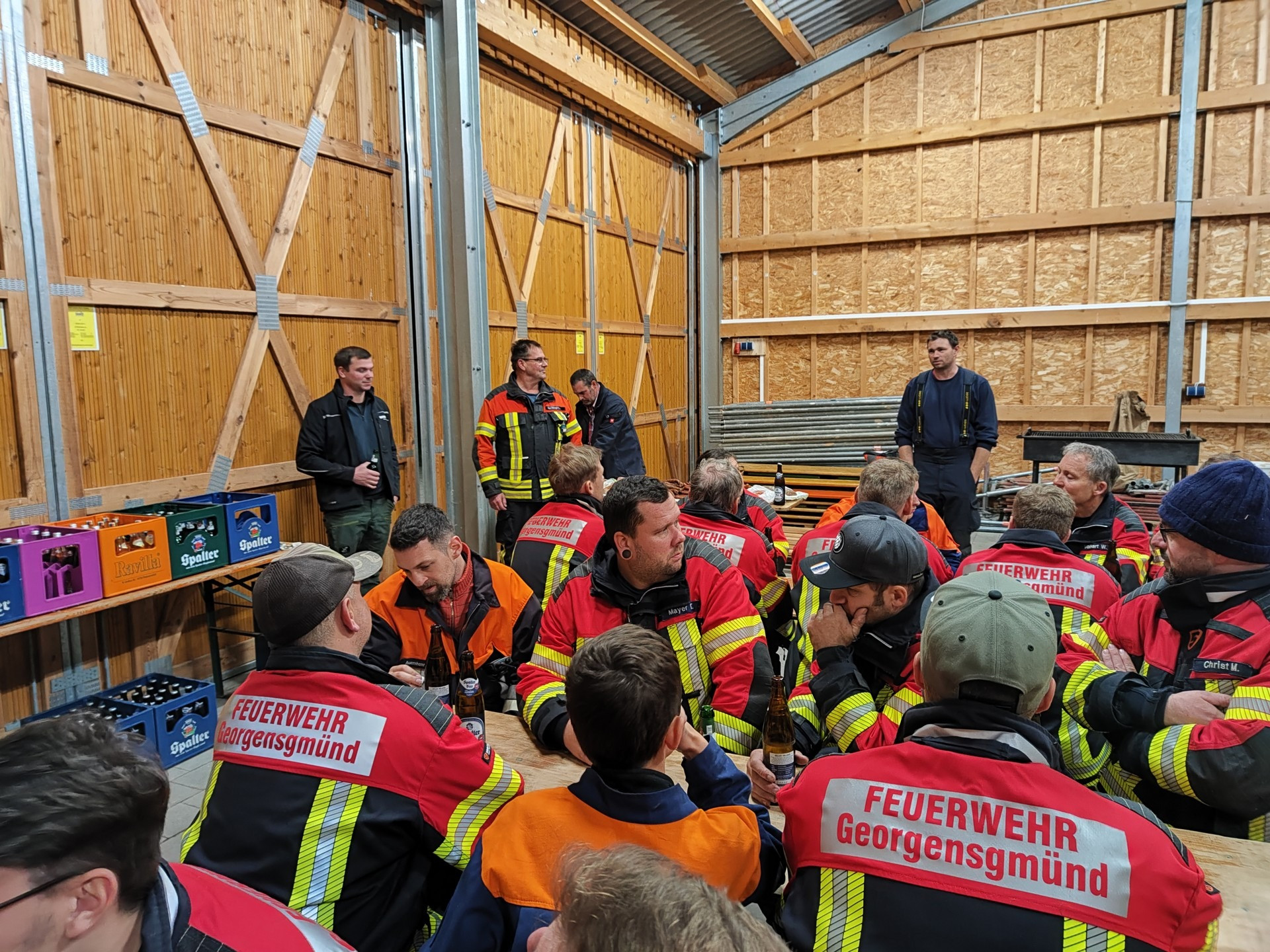Die Übung wurde vom örtlichen Einsatzleiter und Kommandanten Matthias Warnick geleitet und überwacht. In der nachfolgenden „Manöverkritik“ zeigten sich Kommandant Matthias Warnick und Stützpunkkommandant KBM Klaus Wolfsberger mit dem Ablauf der Übung sehr zufrieden. Die Zusammenarbeit hat wie immer hervorragend geklappt und sei sehr wichtig. 2. Bürgermeister Georg Schiffermüller bedankte sich im Namen der Gemeinde Georgensgmünd für die geopferte Freizeit, die von den Feuerwehraktiven geleistet wird. Als Nebeneffekt entstehe ein guter Zusammenhalt unter den Feuerwehrkammeraden. Der Familie Scheuerlein galt ein besonderer Dank, für das zur Verfügung stellen des Übungobjektes.