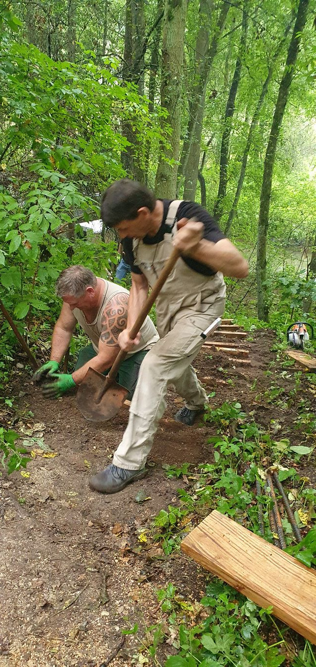 Das Material (Eichenbohlen, Stahlstangen und Schotter) wurde uns kurzfristig zur Verfügung gestellt und am 10. und 11.09.2021 durch die Mitglieder der Feuerwehr, bei wechselhaftem Wetter, eingebaut.