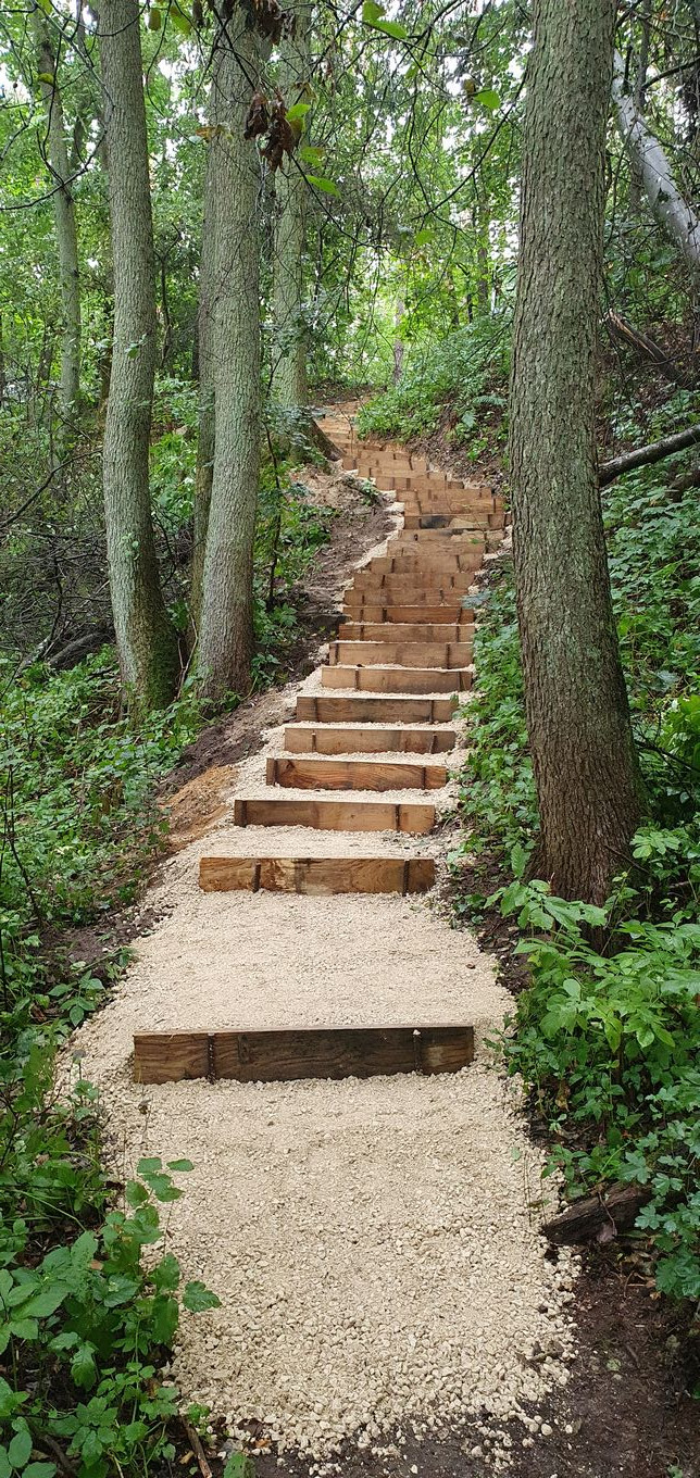 Es musste immerhin ein Höhenunterschied von 8,00 m überwunden werden. Dies ist jetzt aber durch 43 Stufen leicht möglich und somit für die vielen Spaziergänger eine große Erleichterung.