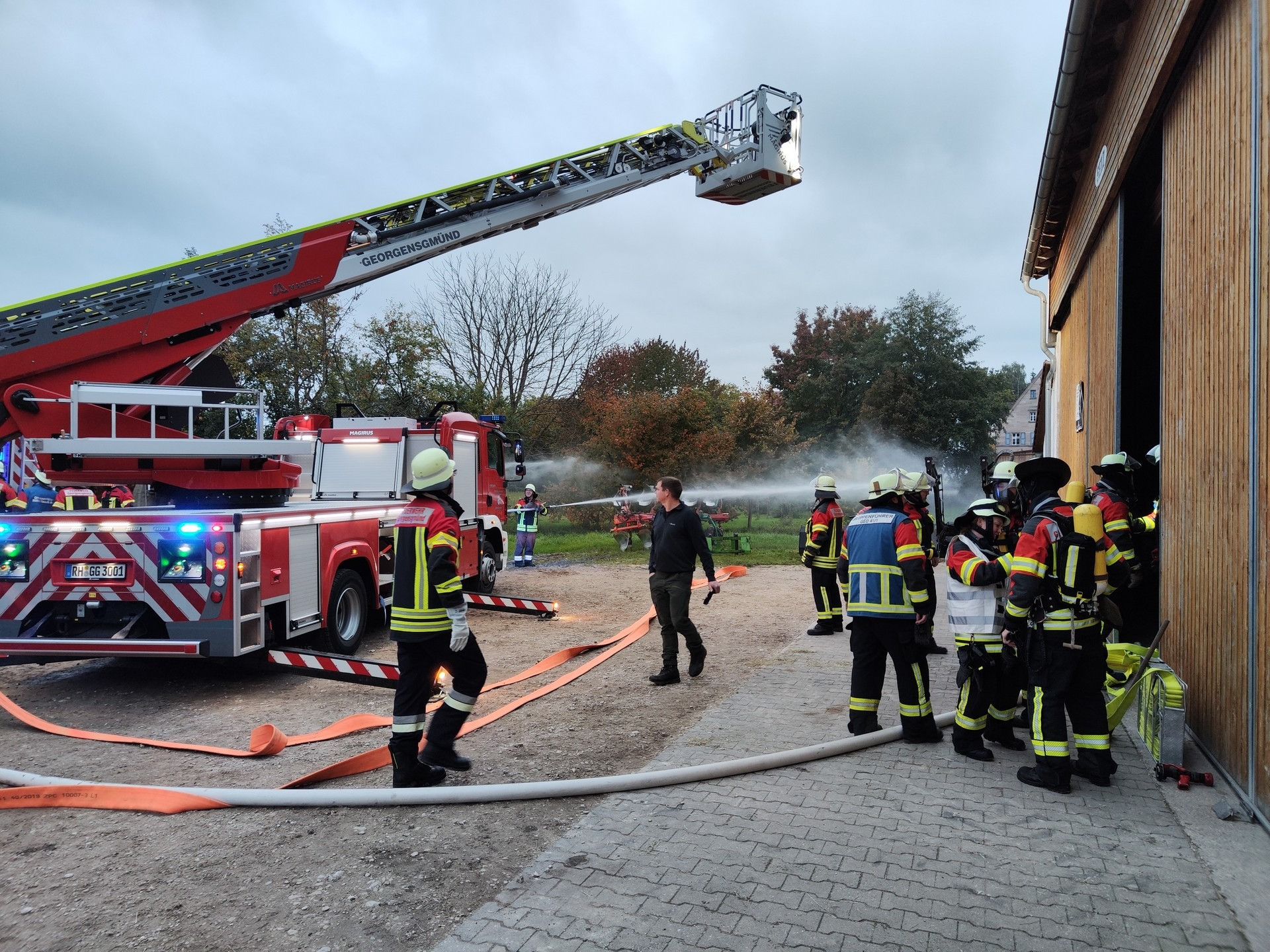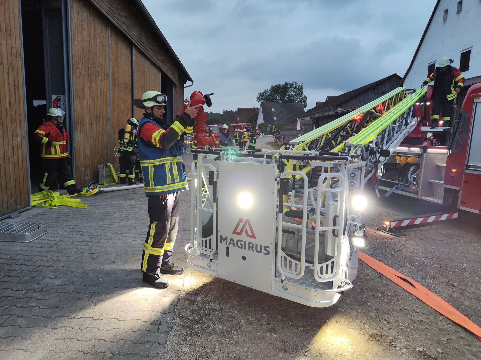 An der Übung waren die Stützpunktwehr Georgensgmünd, die Ortswehren aus Mäbenberg, Rittersbach, Petersgmünd und dem „Unglücksort“ Mauk-Wernsbach beteiligt. Angenommen wurde der Brand des landwirtschaftlichen Anwesens der Familie Scheuerlein in Obermauk. Von der Stützpunktwehr wurden mehrere Trupps unter Atemschutz eingesetzt. Mit der Drehleiter aus Gmünd wurde der Brandort zusätzlich von „oben befeuchtet“. Aus der verrauchten Scheune konnten alle Brandopfer gerettet werden. Die Erstversorgung der „schwerverletzten Opfer“ erfolgte durch die örtliche Wehr.